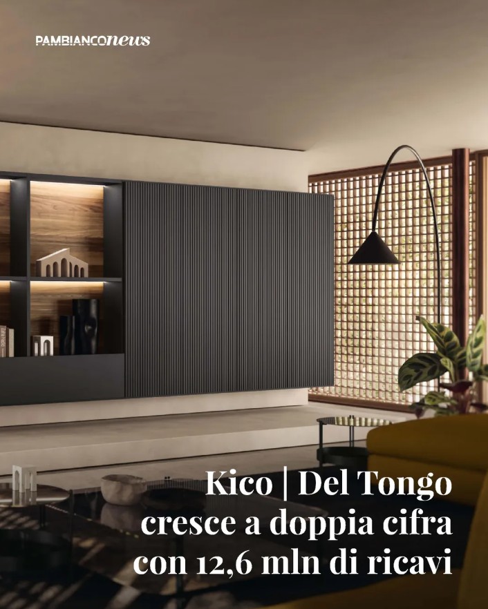 Azienda nata nel 2007 in Abruzzo e specializzata nella produzione di mobili e cucine, Kico | Del Tongo ha registrato nel 2025 un fatturato di 12,6 milioni di euro, con un aumento del 23% rispetto all’anno precedente. Il gruppo ha proseguito la sua strategia di espansione internazionale, contando il 54% delle vendite all’estero in oltre 55 Paesi.